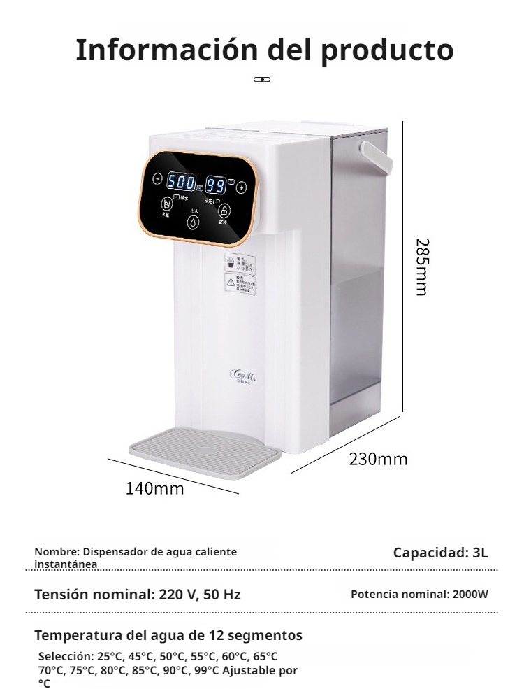 Dispensador de agua caliente instantáneo de escritorio